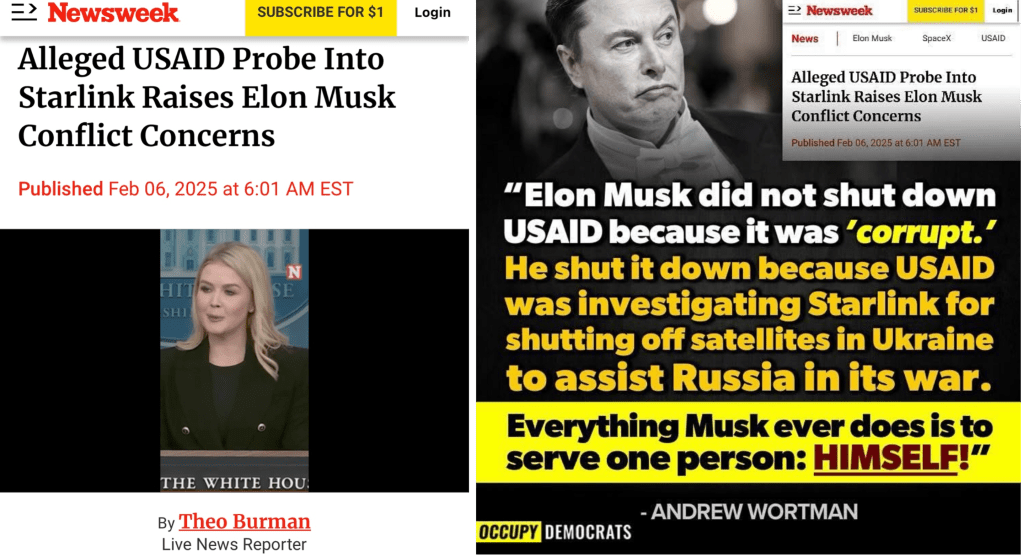 Newsweek reported Feb. 6 that just months before Musk shut down USAID, the agency was investigating its relationship with Musk’s Starlink satellite company.