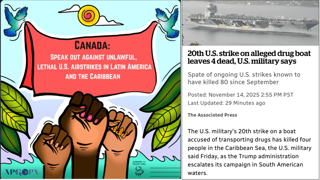 Canadians need to call on their government to speak out against illegal U.S. airstrikes on boats in the Caribbean and eastern Pacific, say two coalitions in which I have participated for nearly three decades.