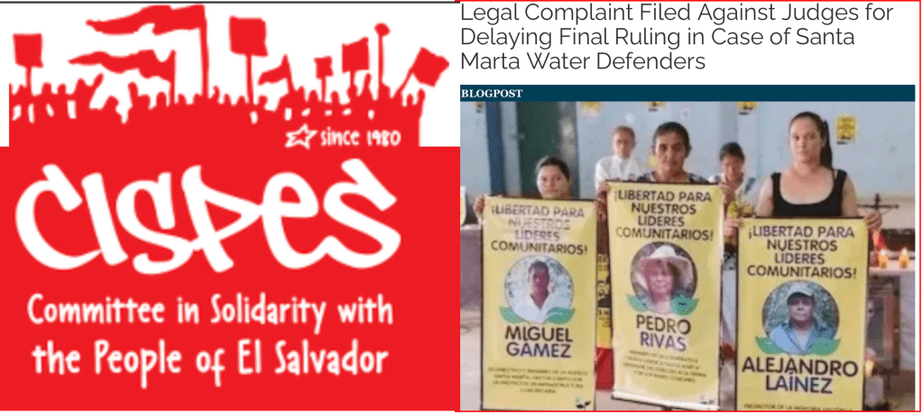 The complaint against the judges was filed with the Judicial Investigation Directorate of the Supreme Court of Justice (CSJ) Jan. 20, 2026, and adds to a series of public actions undertaken by the families, organizations, and human rights groups to demand the definitive closure of the judicial process against the water defenders. They had previously been part of a successful struggle to stop a gold mine from re-opening in the northern part of Cabañas department.
