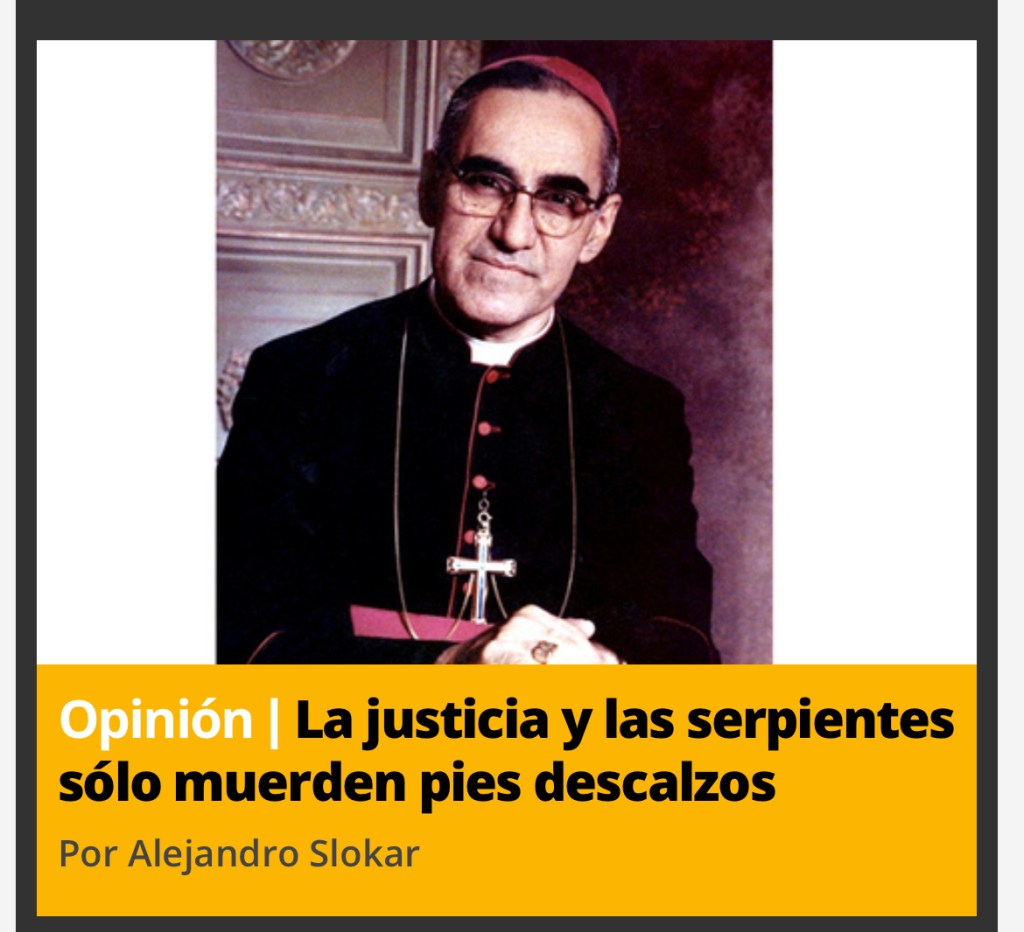 A headline and a photo in the Buenos Aires newspaper Página 12 caught my eye today. Together with a photo of Saint Óscar Romero was this phrase: “Justice and snakes only bite bare feet.” *
